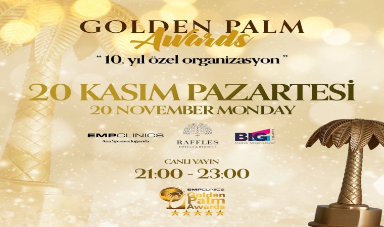 Golden Palm Mag tarafından düzenlenen 10. EMPCLINICS Golden Palm Awards, 20 Kasım Pazartesi günü Raffles Otel’de gerçekleşecek. Ünlü manken Ece Gürsel ve ünlü oyuncu Hakan Bilgin’in sunacağı organizasyonda, kırmızı halı sunuculuğunu ise Hülya Yenidoğmuş yapacak. Organizasyona iş, sanat, cemiyet ve medya dünyasının önde gelen isimleri katılacak. Halk oylamasıyla ödüllerin sahiplerini bulacağı ödül töreni için toplam 264 bin 738 kişi oy kullandı.