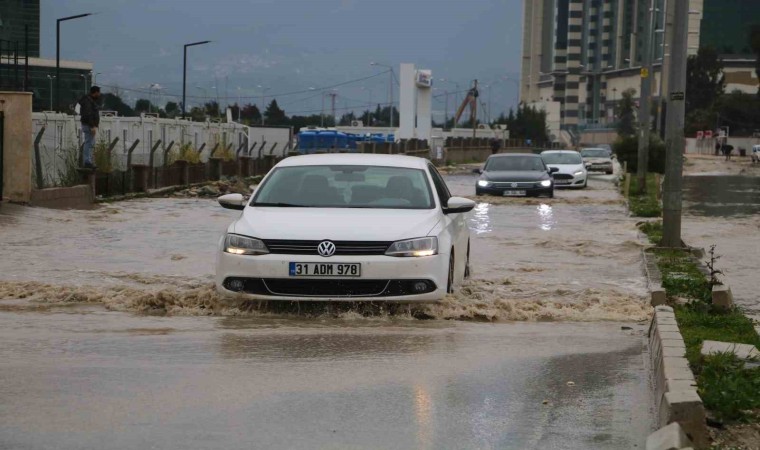 Hatay’ın Antakya ilçesinde etkili olan yağış sonrası göle dönen cadde sürücülere zor anlar yaşattı. Büyükşehir belediyesi ekipleri de su baskınlarının yaşandığı noktalarda tahliye işlemlerini sürdürüyor.