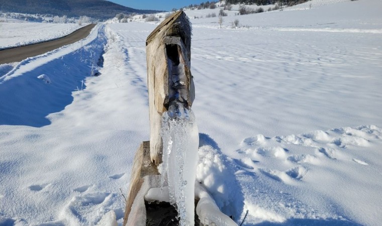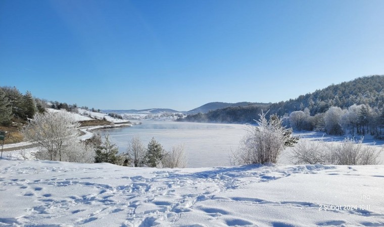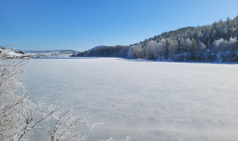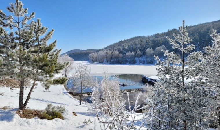 Karabük’ün Eflani ilçesinde kar yağışının ardından etkili olan soğuk hava nedeniyle ilçede yer alan göletlerin yüzeyleri ile ağaçlar buz tuttu.