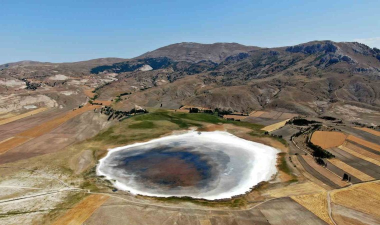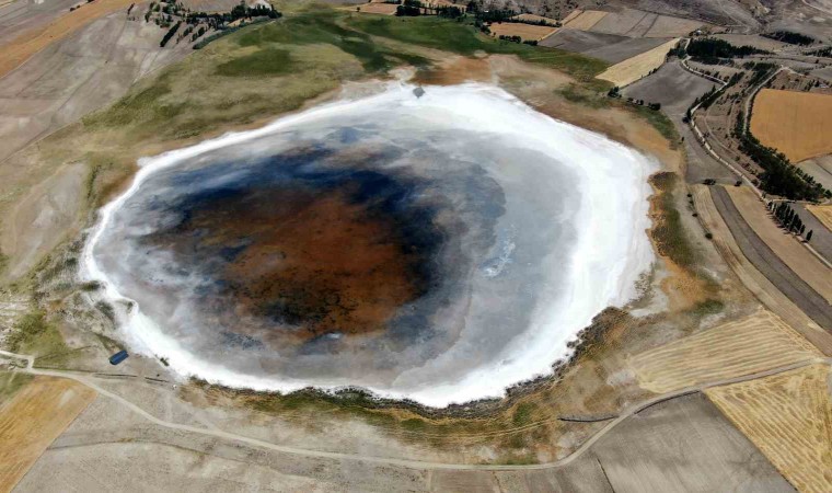 Sivas’ın Ulaş ilçesine uzaklığı yaklaşık 5 kilometre olan Kellah Gölü, geçtiğimiz yıllarda da olduğu gibi bu yıl da kurudu. Aşırı sıcaklara dayanamayan gölün bir kısmındaki su buharlaştı. Göçmen kuşlara da ev sahipliği yapan gölün kuruyan kısmında gölden geriye tuz tabakası kaldı. Su bulunan yüzeyin ortasında kalan tuz tabakası kalbi andıran görüntü oluşturdu.