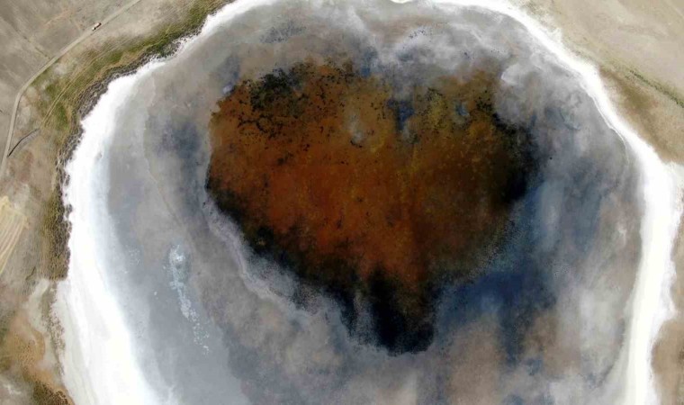 Aşırı sıcakların yaşandığı Sivas’ta Kellah Gölü’nün bir kısmı kurudu, gölün kurumayan kısmında ise kalbi andıran şekil ortaya çıktı.