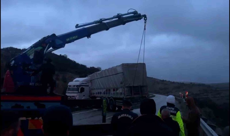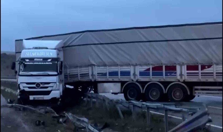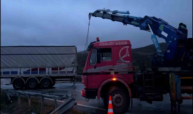 Balıkesir’de Gönen-Bandırma karayolunda kontrolden çıkan tırın refüje çarptığı kazada maddi hasar meydana geldi.