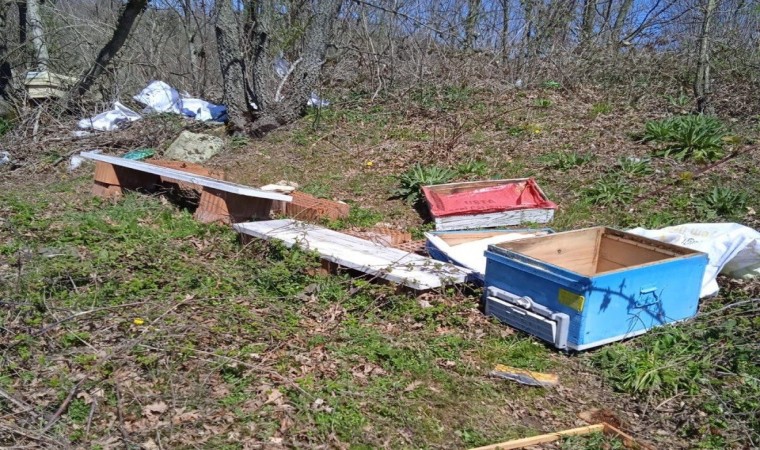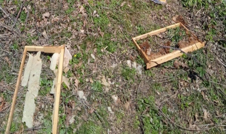Balıkesir’in Gönen ilçesi Kocapınar kırsal mahallesinde merada bulunan arı kovanlarına, ayılar tarafından zarar verildi.