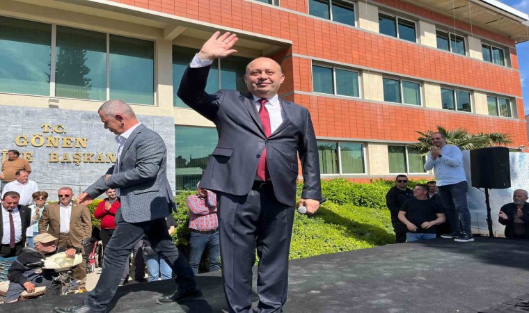 Palaz, mazbatasını aldıktan sonra Gönen Belediyesi önünde vatandaşlara seslendi.