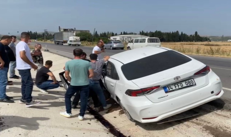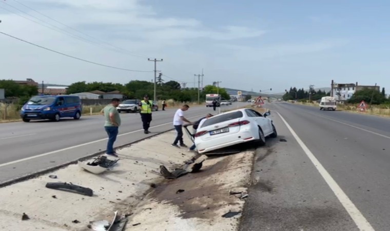 Balıkesir’in Gönen ilçesinde tek taraflı trafik kazası meydana geldi. Savrularak orta refüje vuran aracın şoförü yaralandı.