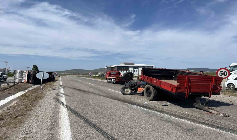 Balıkesir’in Gönen ilçesinde süt tankeri ve traktör çapıştı. Kazada 2 kişi yaralandı.