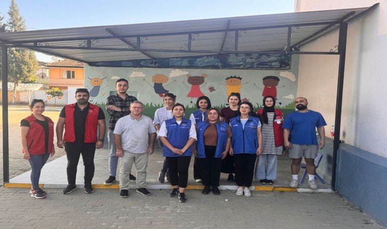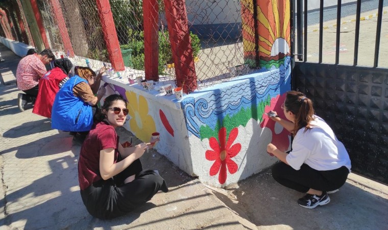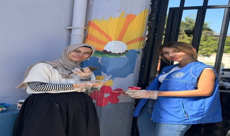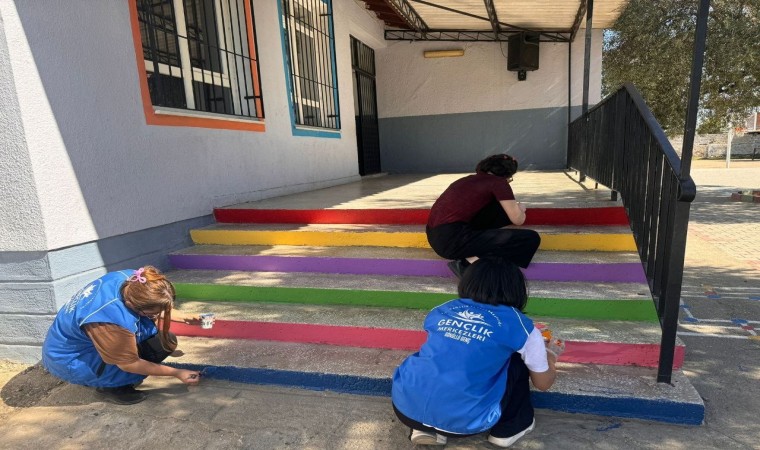 Aydın’ın Efeler ilçesindeki bir ilkokula giden gönüllü gençler, ellerine aldıkları fırçalarla okulu renklendirdi.