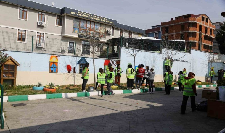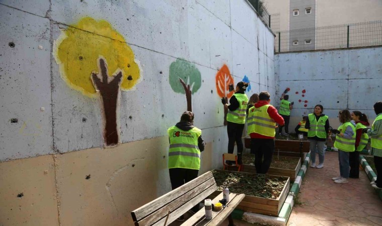 "Kocaeli Gönüllüsü" projesi kapsamında bir araya gelen gençler, Çayırova Şehit Adem Sezgin Anaokulunun duvarlarını boyadı.
