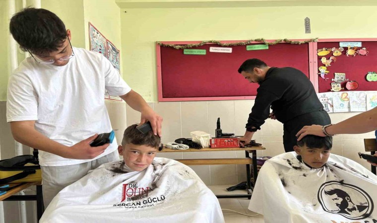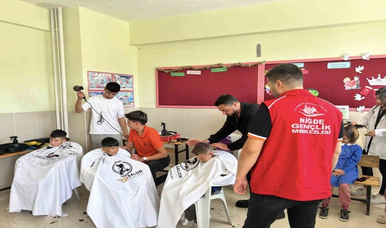 Niğde’de Bor Ömer Halisdemir Gençlik Merkezi’nin Gönüllü Makas Projesi kapsamında gönüllüler Çiftlik ilçesine bağlı Bozköy Mehmet Akif İlkokulundaki öğrencilerin saç bakımını yaptı.