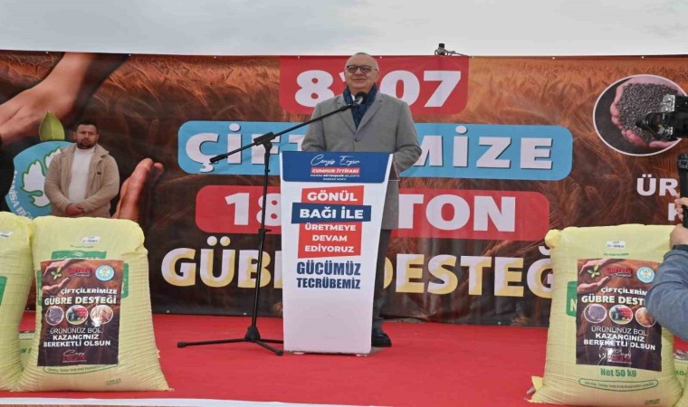 Destekleme projelerine katkı verenlere teşekkür eden Başkan Ergün, konuşmasını şöyle tamamladı: “Köylü Milletin Efendisidir” ilkesiyle ve üretken belediyecilik anlayışımızla üreticilerimizin gelirlerini arttırmaya yönelik hizmetlerimiz devam edecek. Tüm üreticilerimize bol kazançlı ve bereketli sezonlar diliyorum. Tarımsal ve kırsal kalkınmaya yönelik projelerimizde her zaman bizlerle işbirliği içinde olan İl Tarım ve Orman Müdürlüğümüze de huzurlarınızda şahsım ve hemşerilerim adına teşekkür ediyorum. Bu duygularla bir kez daha hepinize sevgi ve saygılarımı sunuyor, gübre desteğimizin tüm çiftçi kardeşlerimize faydalı olmasını temenni ediyorum. Ürününüz bol, kazancınız bereketli olsun.”