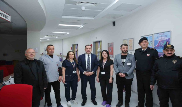 Bayburt Devlet Hastanesi’ni de ziyaret eden Vali Eldivan, yeni doğan bir bebeğe altın taktı, hastane çalışanlarının yeni yılını kutladı.