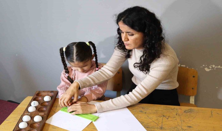 Fatmanur’a eğitim verirken heyecanlı olduğunu söyleyen Girgin, “Sonuçta yıllar önce ben de bu eğitimi aldım ve bu eğitimi şimdi Fatmanur’a veriyorum. Normalde ben Türkçe öğretmeniyim. Haftanın iki günü geliyorum. Fatmanur’a Braille alfabesinde okuma ve yazmayı öğretmeye çalışıyorum. Fatmanur’la birlikte olmaktan ve bir şeyler öğretmekten dolayı çok mutluyum” dedi.