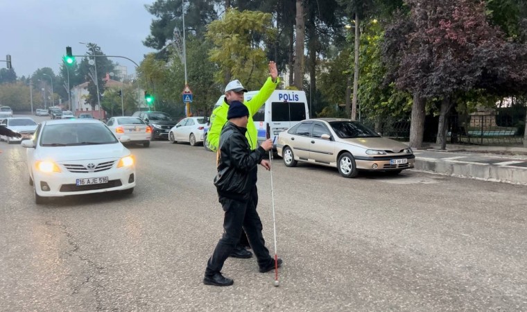 Yolun karşısına geçmeye çalışan görme engelli bir vatandaşın olduğunu fark eden trafik polisi, hemen yardımına koştu. İsminin Ali Ezgi olduğu öğrenilen görme engelli adamı karşıya geçiren polis memuru, evine gitmek istediğini öğrendi. Yoldan geçen bir aracı durduran polis memuru, görme engelli adamı evine bırakmasını istedi. Sürücü Ali Ezgi’yi aracına alıp evine bıraktı.
