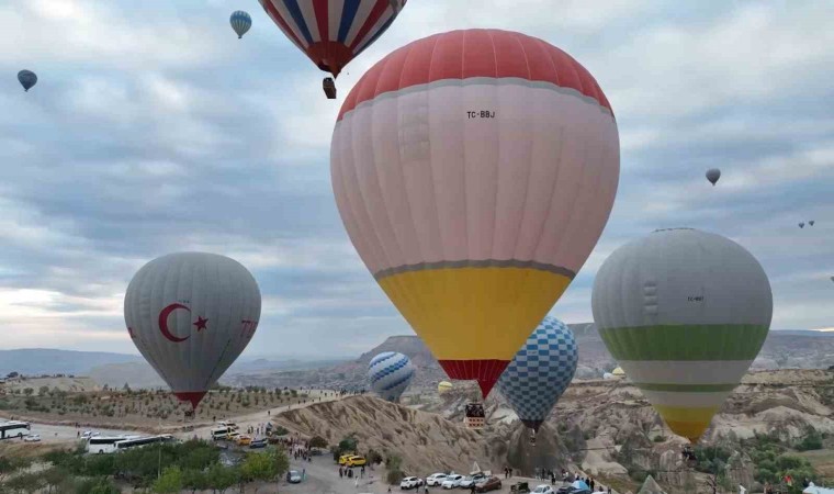 Kapadokya bölgesinde yapılan sıcak hava balonu turu, son 3 gündür sabah saatlerinde şiddetini artıran rüzgar nedeniyle yapılamamıştı. Görsel şölen bugün tekrar başladı.