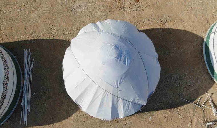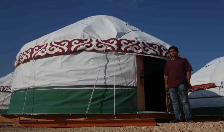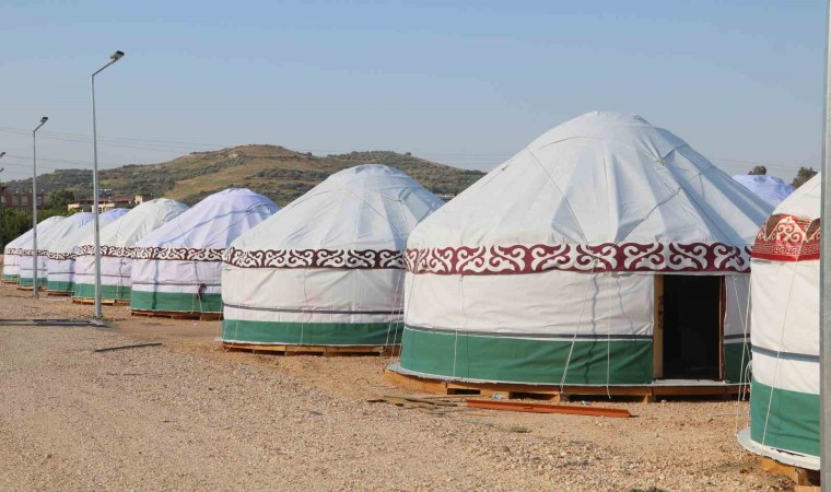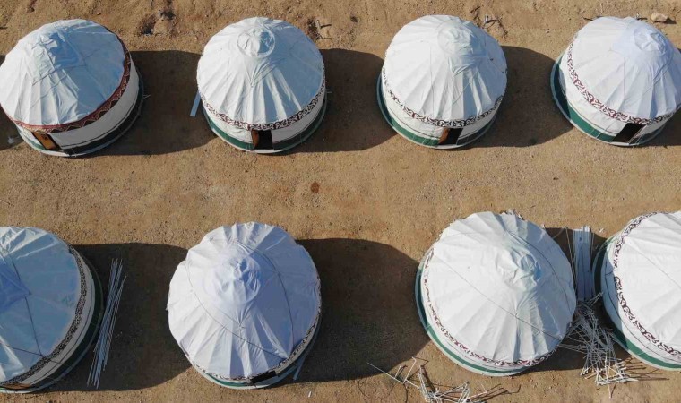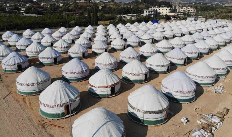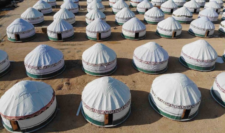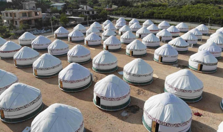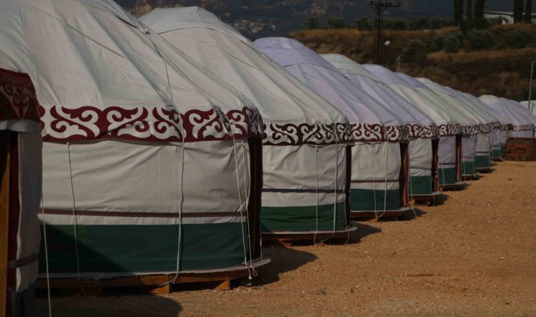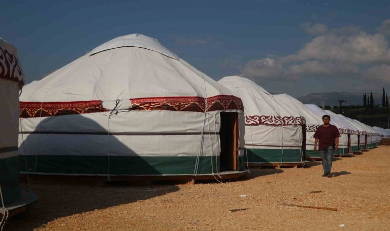 Depremin vurduğu Hatay’da inşa edilen ve görünümleriyle dikkat çeken 174 Kırgız çadırı hazır hale gelmesinin ardından vatandaşların geçici de olsa yeni yuvası olacak.