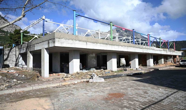 Kemer Belediye Başkanı Necati Topaloğlu’nun “Her mahalleye bir kapalı pazar yeri” projesi kapsamında Göynük Mahallesi’nde yapımı hızla devam eden kapalı pazar yerinde çalışmalar tamamlanmak üzere.