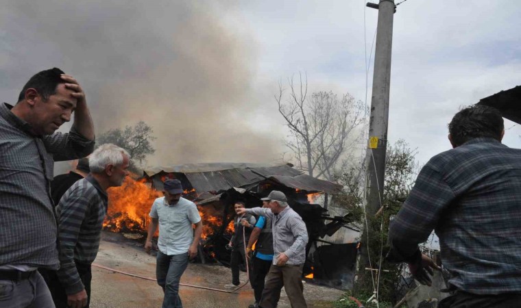 Yangın sebebiyle, ahır, fırın evi ve 2 samanlıkta bulunan toplamda 2 bin adet saman balyası küle döndü.