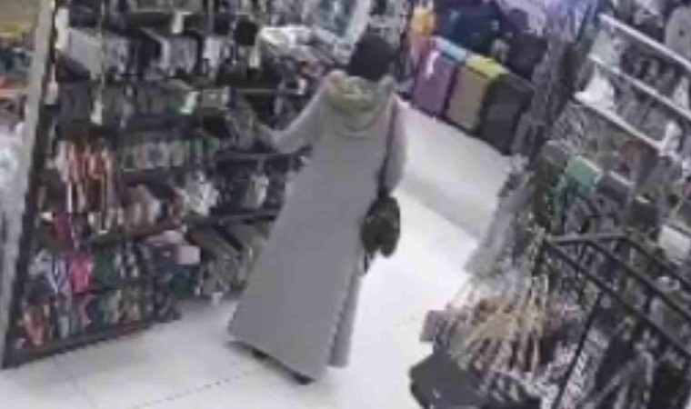 Elazığ’da bir kadın, alışveriş yapıyor gibi gittiği çanta dükkanından 3 bin lira değerinde seçtiği iki çantayı çaldı. Kadının, hırsızlık sırasındaki rahat tavırları dikkat çekti.