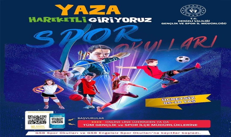 Denizli Gençlik ve Spor İl Müdürlüğü bünyesinde yıl boyunca devam eden GSB Spor Okulları, yaz dönemiyle birlikte spora yeni başlayacak çocukları da içine alarak yeni gruplarla başlıyor. Kurslar kapsamında bu sene basketboldan karateye, eskrimden taekvandoya kadar 25 farklı sportif branşta ve onlarca gençlik merkezi kurslarıyla ücretsiz çalışmalar yapılacak.