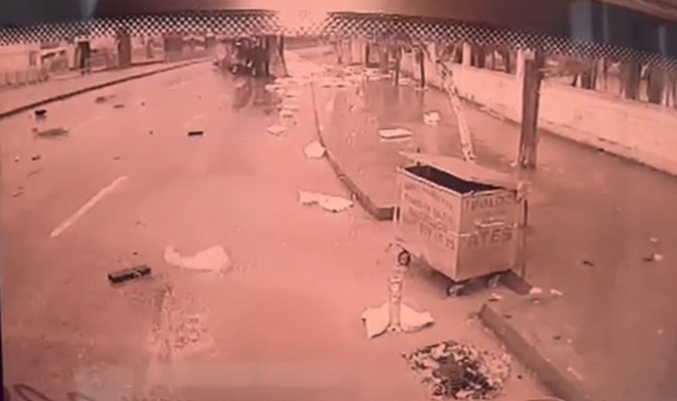 Öte yandan kaza anına ilişkin güvenlik kamera görüntüleri ortaya çıktı. Görüntülerde ışıklı kavşakta ilerleyen otomobilin tam geçtiği sırada sol tarafından korna basarak süratle gelen kamyonun çarpışması ve devrilip otomobili metrelerce sürüklemesi yer aldı.