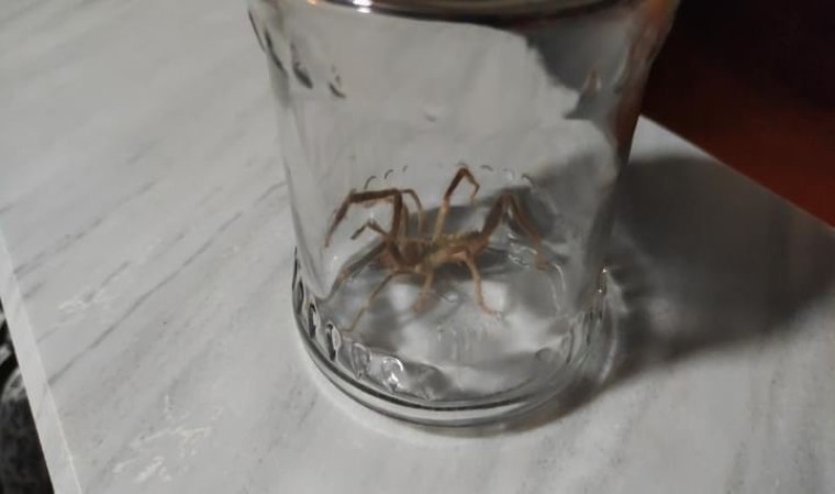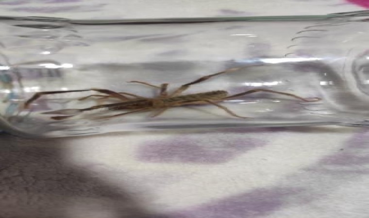 Güçlü zehre sahip, 1 metre yükseğe kadar zıplayabilen ve et yiyen örümcek olarak da bilinen etobur sarıkız örümceği, Hakkari’nin Yüksekova ilçesinde görüldü.