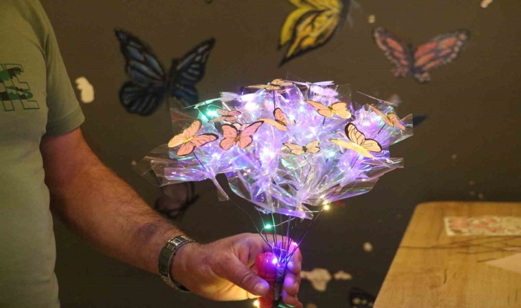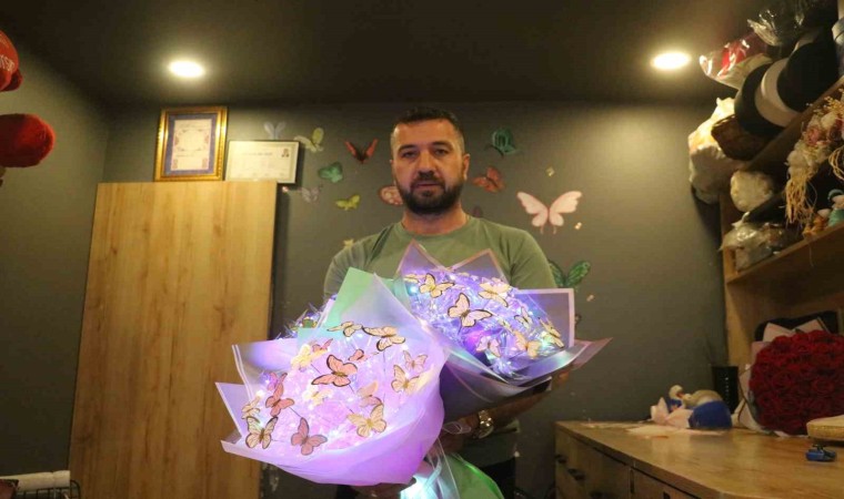 Son dönemde çiçek aranjmanları dünyasında dikkat çeken yenilik ‘led ışıklı kelebek buketler’ oldu. Canlı veya cansız çiçekler yerine, bu şık ve modern buketler, estetik ve işlevsel açıdan büyük ilgi görüyor. Kelebeklerin zarif görünümleri ve led ışıkların verdiği parıltı ile oluşturulan bu buketler, özel günlerde ve etkinliklerde adeta bir görsel şölen sunuyor. Buketlerin içindeki led ışıklar, karanlık ortamlara farklı bir ambiyans katarken, aynı zamanda dekoratif bir aydınlatma işlevi görüyor. 25 yılı aşkındır çiçekçilik yaptığını söyleyen Oğuz Öcal, “Önceden bir dal gül verilirdi şimdi ise ışıklı kelebek buketi veriliyor” dedi.