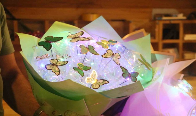 Gelenekselleşen çiçek buketlerinin yerini artık led ışıklı kelebek buketler aldı. Kelebek buketlere olan ilgi arttı.
