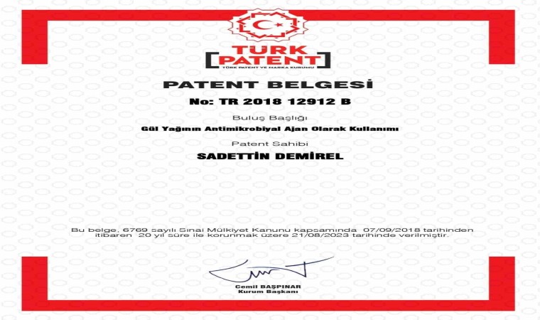 Çalışılan bakterilerin kültüre edilmiş suşlarınave klinik izolatlarına karşı yüksek antimikrobiyal aktivite gösterdiği belirlenen gül yağının, bu bakterilerin oluşturabileceği enfeksiyonların önlenmesinde kullanılabileceğini aktaran Doç. Dr. Sadettin Demirel; “Buluş, antibiyotik kullanımının azaltılmasına katkı sağlayacak ve böylece antibiyotiklere karşı dirençli bakteri türlerinin gelişimini engelleyerek insan ve çevre sağlığı açısından yararlı etkiler gösterebilecek. Özellikle, gül yağı ekstraktından hazırlanan seyreltik solüsyon gargara olarak üretilebilecek ve belirlenen konsantrasyonların diğer ağız v ve diş sağlığı ürün formülasyonlarına dahil edilmesi ağızdaki kötü kokuları önlemekle birlikte ağız ve diş sağlığının korunmasına yardımcı olabilecek. Türkiye’nin dünya gül yağı üretimindeki payı göz önüne alındığında, buluş çerçevesinde üretilecek yüksek katma değerli yüzde 100 doğal patentli ürünler ülke ekonomisi açısından önemli bir rekabet gücü oluşturabilecek” açıklamasında bulundu.