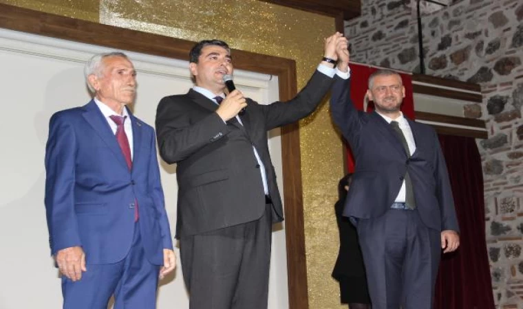 Uysal, konuşmasının ardından Şehzadeler Belediye Başkan adayı Murat Yörük'ü sahneye davet ederek parti rozetini taktı. (DHA)