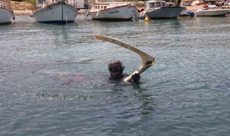 Denize En Çok Mavi Yakışır sloganıyla denizleri ve kıyıları atıklardan arındırma amacıyla yapılan Deniz Dibi Temizliğinin 8. etabı Gümbet Koyu’nda devam etti.