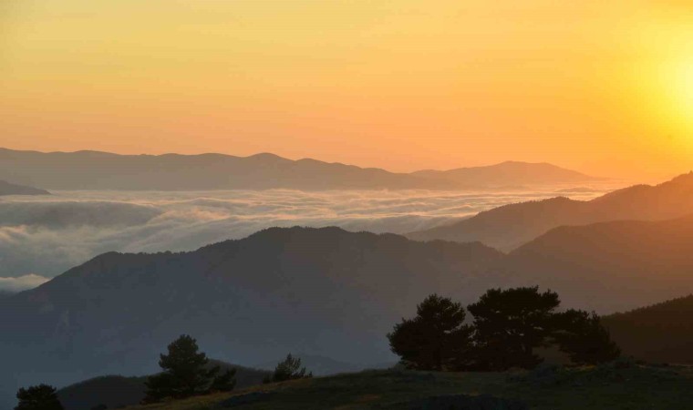 Son günlerde yaşanan sıcak hava dalgası nedeniyle nem oranının da yükselmesiyle birlikte kentin yüksek kesimlerinde vadilerde biriken sis bulutu manzaralarıyla buluşan gün batımı saatleri izleyenleri mest ediyor.