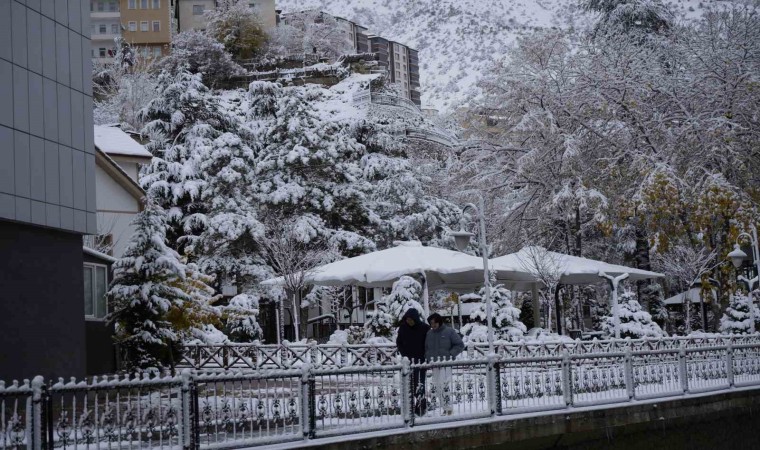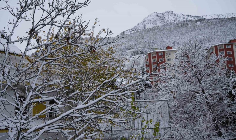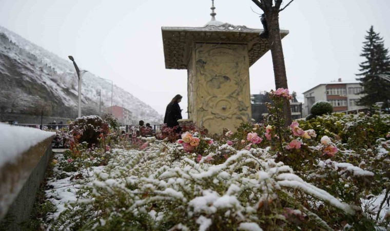 Gümüşhane şehir merkezi mevsimin ilk kar yağışının ardından beyaza büründü. Yağış nedeniyle çatılar, araçlar ve ağaçların üzerleri karla kaplandı.