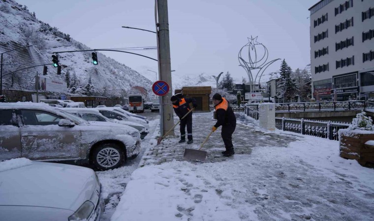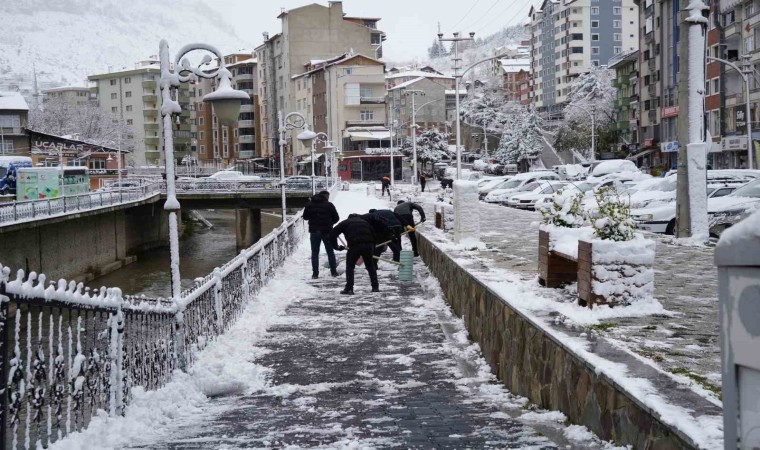 Kar kalınlığının 18 santimetreyi bulduğu kent merkezinde vatandaşlar arabalarını ve iş yerlerinin önünü sabah saatlerinden itibaren kardan temizlerken, Gümüşhane Belediyesi ekipleri de yol ve kaldırımları temizlemek için çalışmalarını sürdürdü.