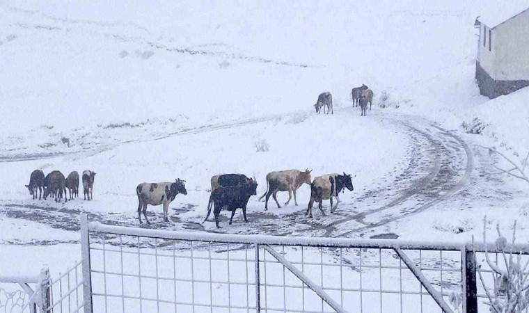 Bazı vatandaşların henüz terk etmeyerek hayvancılık yapmaya devam ettiği yaylalarda bu yıl kar yağışı erken gerçekleşti.