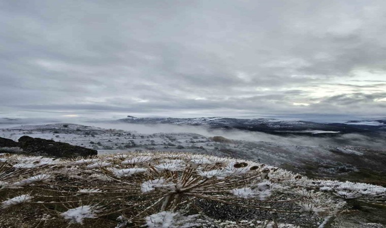 Yaylaların yanısıra bazı yüksek köylerde de kar yağışı gerçekleşti. Sisle bir araya gelince eşsiz manzara sunan kar örtüsü görenleri etkiledi.
