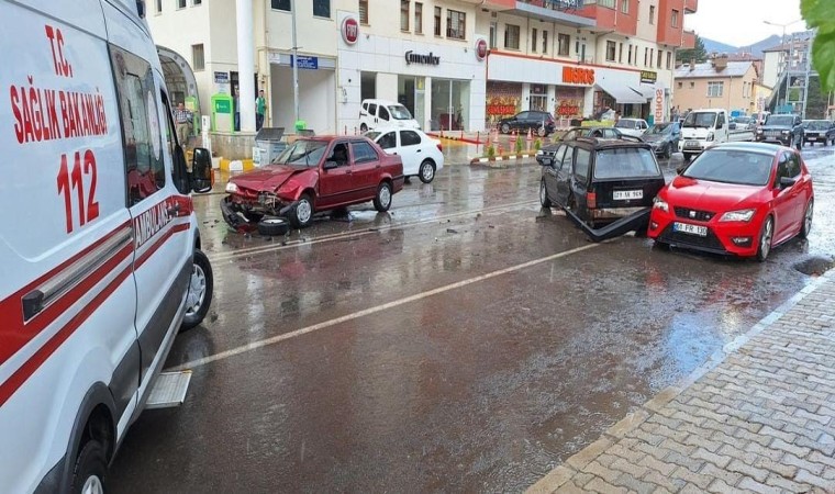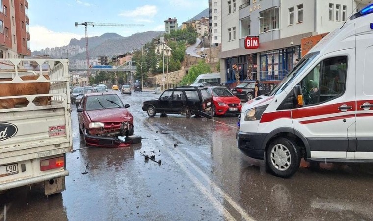 Gümüşhane’de yağmur nedeniyle kayganlaşan yolda 3 aracın karıştığı trafik kazası, maddi hasarla atlatıldı.
