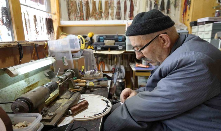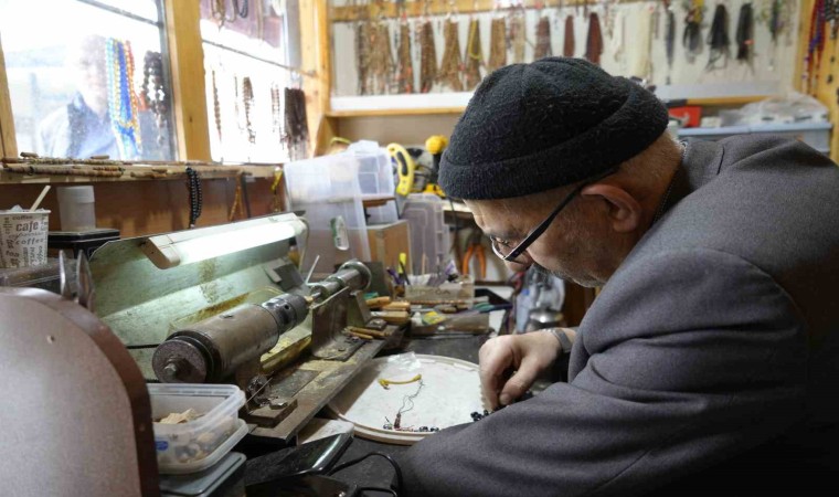 Gümüşhane’de yaşayan Musa Bulgur, çocuk yaşlarda sol kolunun kesilmesine rağmen sabır gerektiren tesbihçilik mesleğini 35 yıldır tek eliyle ustalıkla sürdürüyor.