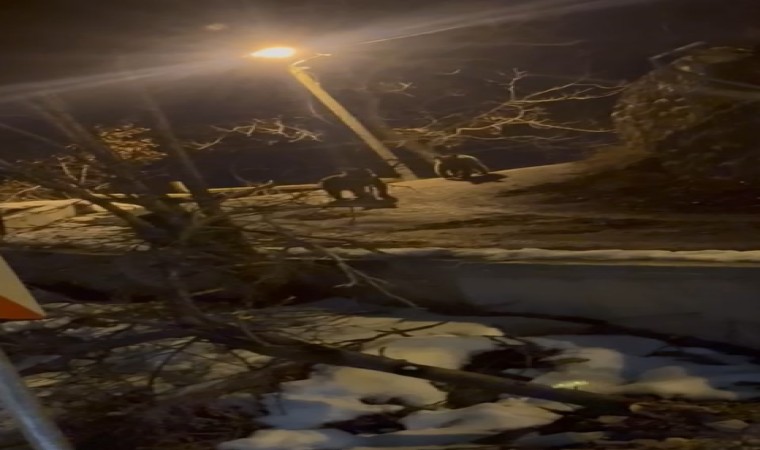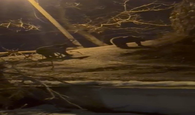 Gümüşhane’de kış uykusuna yatamayan ve aç kalan 3 yavru ayı kentin Eskibağlar Mahallesi’nde yiyecek ararken bir vatandaşın cep telefonu kamerasıyla görüntülendi. Mahallenin içerisinde ve evlere çok yakın bir noktada yiyecek arayan 3 yavru ayı daha sonra araba sesini duyar duymaz gözden kayboldu.