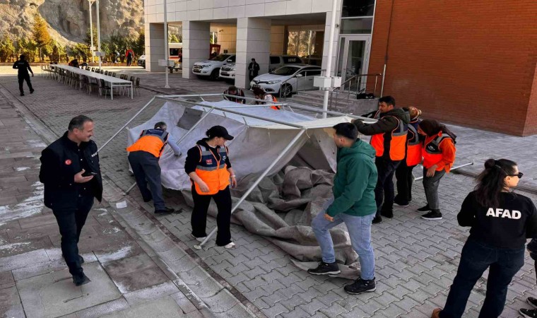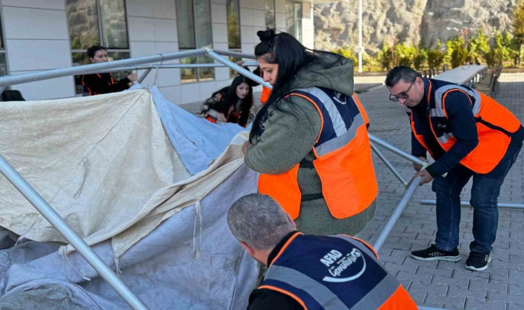 Afet bölgelerinde en önemli ihtiyaçlardan birisi olan çadır kurulumu için düzenlenen hem eğlenceli anlar yaşatıp hem de afet durumları için pratik yapma fırsatı sunan yarışmada 3 takım halinde gönüllüler en hızlı şekilde çadırı kurmak için birbiriyle kıyasıya yarıştı. 4,5 dakikada çadırı kuran ekip birinci olurken takımdaki herkese afet çantası hediye edildi.