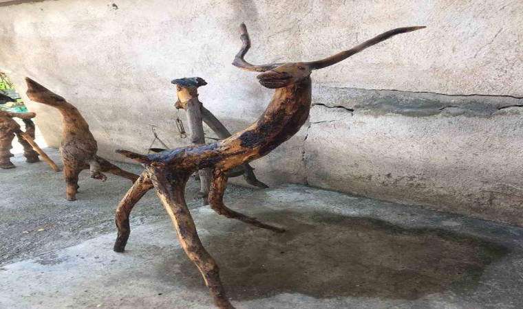 İnsanların eserleri karşında çok farklı tepkiler verdiğini söyleyen emekli öğretmen Kara, “Bir eseri ilk önce betimliyorum, bir şeye benzetmem gerekiyor. Eserin büyüklüğüne göre 1 günde sürüyor 1 ay da ama eser bitti diye bir şey yok sürekli üzerinde çalışmaya devam ediyorum en iyi hale getirmeye çalışıyorum. Çok fazla eserim var, geyik, maymun figürleri, bedevi figürü var. Hepsi birbirinden güzel ayırt edemiyorum. Görünce ağlayanı da gördüm, güleni de gördüm bunlardan iyi odun olur diyeni de gördüm çok farklı yorumlarla karşılaştım. İnsanlar kahve köşelerinden uzak dursunlar 7’den 70’e herkesin yapabileceği çok güzel işler var. Bu dünya fani geride bir şeyler bırakalım ve gençlerimize örnek olalım. Öldükten sonra da yaşamak istiyorsak bunun yolu budur” diye konuştu.
