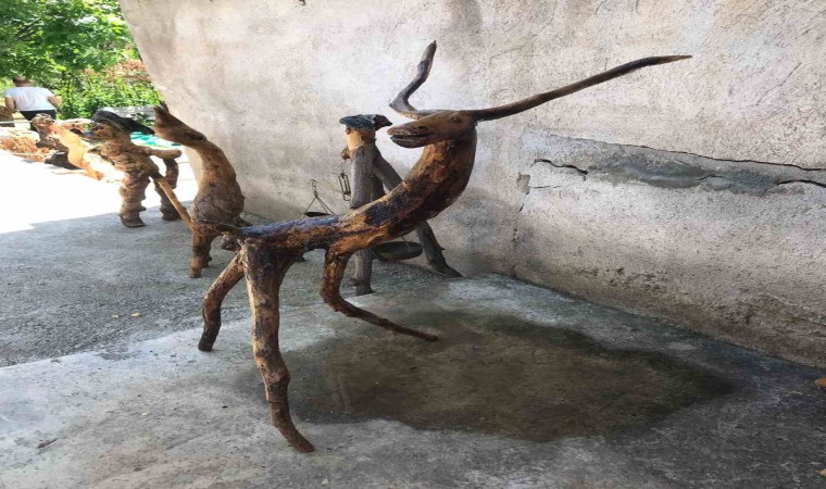 Gümüşhane’nin Şiran ilçesi Yeniköy köyünde yaşayan 73 yaşındaki emekli öğretmen Rıza Kara, 20 yıldır dere kenarlarından ve ormanlardan topladığı ağaç köklerini orijinal şekillerinden esinlenerek insan ve hayvan objelerine dönüştürüyor.