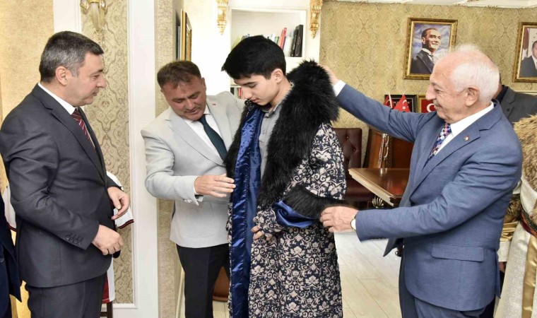 Program kapsamında kutlama komitesi Gümüşhane Valisi Alper Tanrısever’i makamında ziyaret etti. Belediye Başkanı Ercan Çimen, Ticaret İl Müdürü Mürsel Yaşar, Ticaret ve Sanayi Odası (GTSO) Başkanı İsmail Akçay, Esnaf ve Sanatkarlar Odaları Birliği Başkanı Yasin Zengin ve diğer oda yetkililerinin katıldığı ziyarette Yılın Ahisi seçilen Şerafettin Alemdar’a, Yılın Kalfası seçilen Emrah Tanrıkulu’na ve Yılın Çırağı seçilen Mustafa Kızılet’e kaftan giydirildi, şed kuşatıldı, plaket ve belgesi takdim edildi.