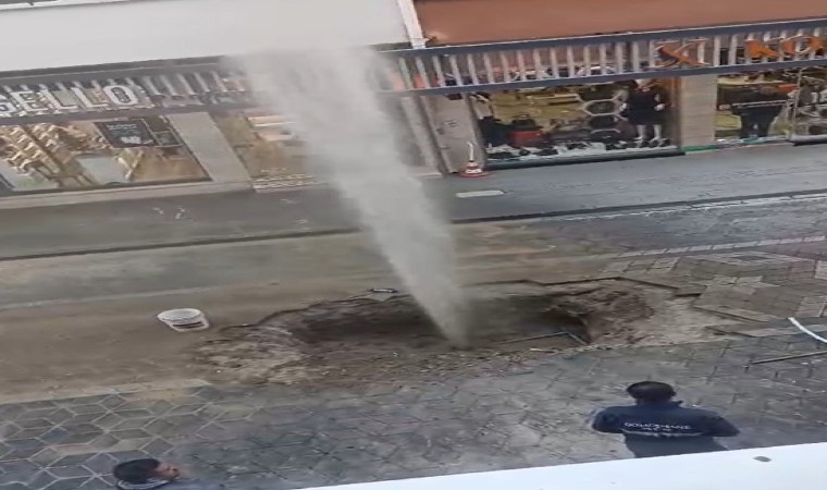 Cumhuriyet Caddesi üzerinde belediye ekipleri tarafından ana su hattı üzerinde yapılan çalışmada boru patladı.