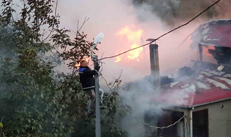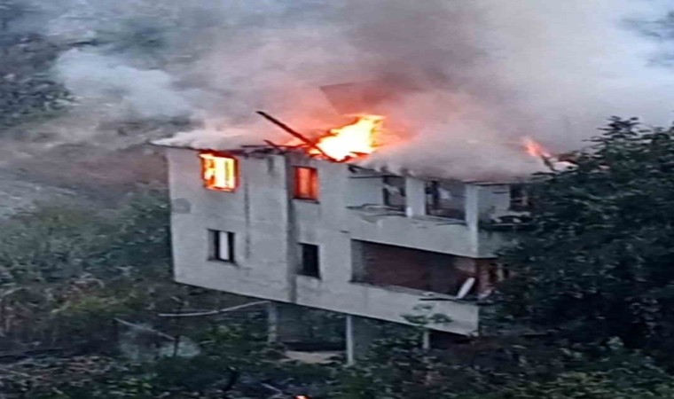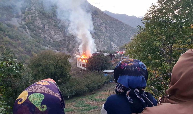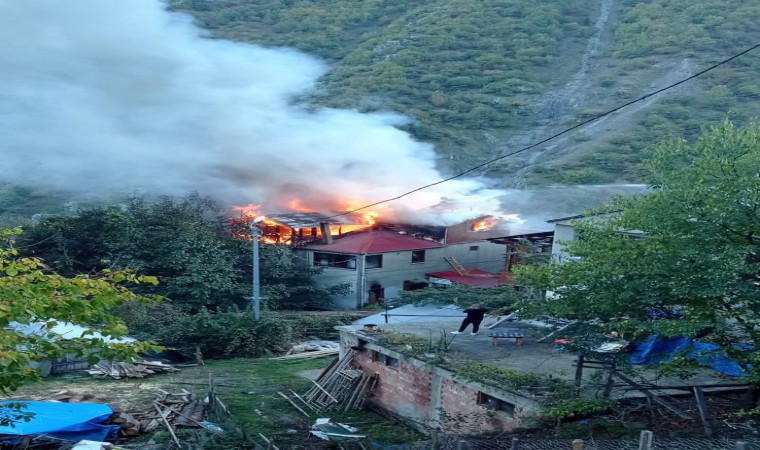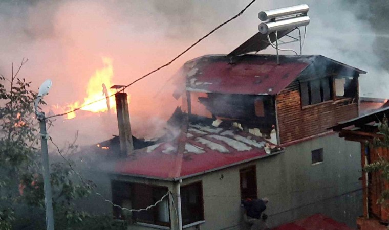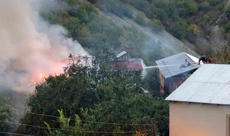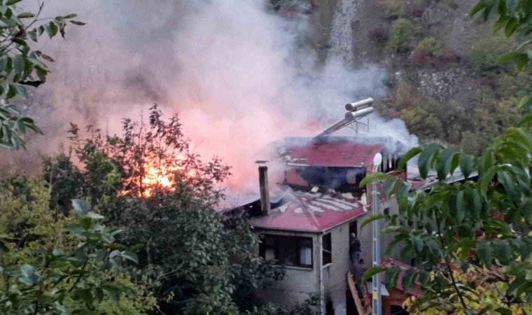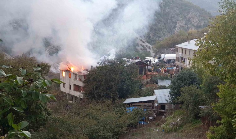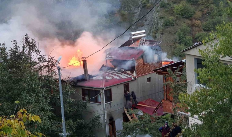 Gümüşhane’nin Kürtün ilçesinde bacadan çıkan yangında 3 katlı evin iki katı hasar gördü.