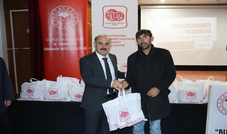 Gümüşhane’nin Köse ilçesinde “Buzağılarımızı Yaşatalım Projesi” kapsamında eğitim alan yetiştiricilere buzağı bakımı ekipmanları dağıtıldı.