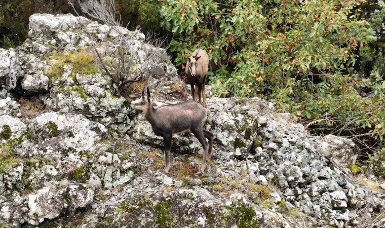 Gümüşhane’de av koruma faaliyetleri ve bölge halkının da sahiplenmesiyle Şamuaların sayısı istikrarlı bir şekilde artarken Doğa Koruma ve Milli Parklar Genel Müdürlüğü (DKMP) de şamuaların dronla çekilmiş görüntülerini sosyal medya hesaplarından “En sarp kayaların, en dar patikaların, en sık ormanların gözü pek keçisi” notuyla paylaştı.