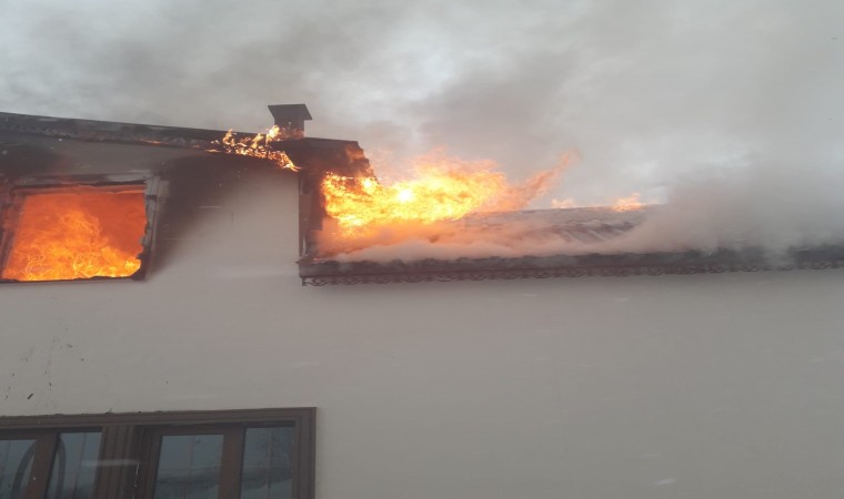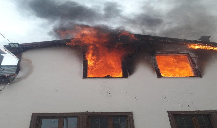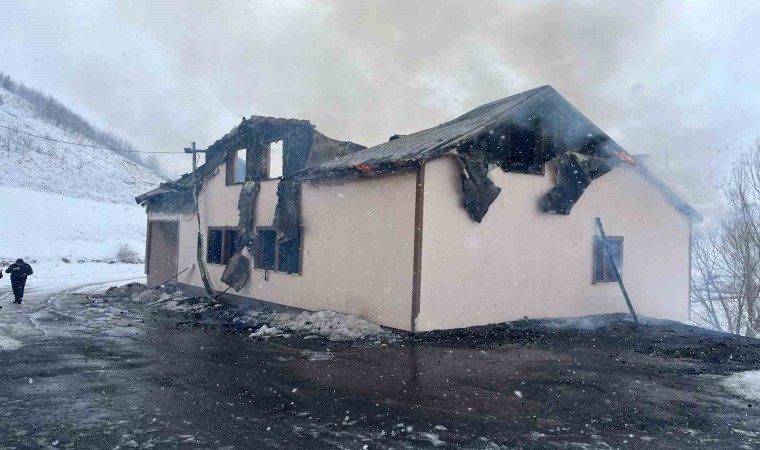 Gümüşhane’nin merkeze bağlı Şephane köyünde çıkan yangında alevlere teslim olan 2 katlı köy konağı ve muhtarlık binası kullanılamaz hale geldi.