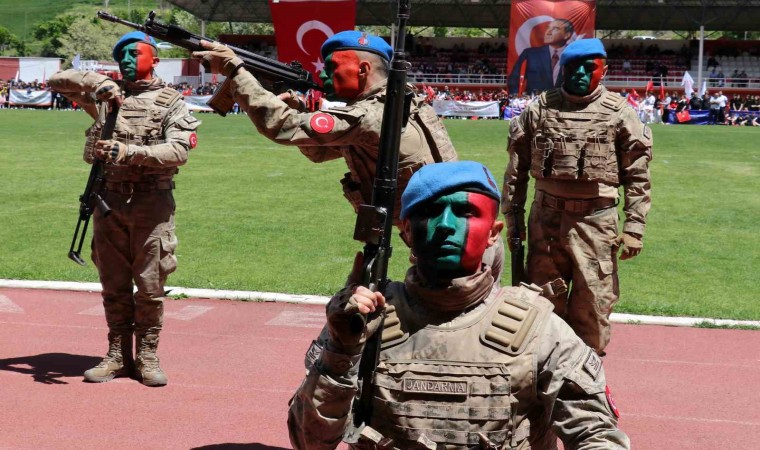 Kürtün Jandarma Asayiş Komando Bölük Komutanlığı’nın gösterisi ve Polis Özel Harekat Tören Yürüyüşü stadyumu dolduran vatandaşlardan izleyenlerden büyük alkış ve beğeni aldı.