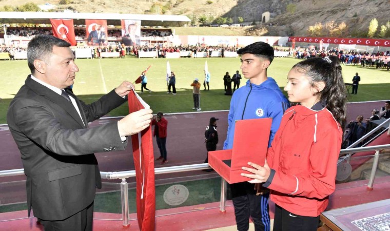 Programın sonunda Cumhuriyet koşusunda dereceye giren öğrenciler tarafından Gümüşhane Valisi Alper Tanrısever’e Türk bayrağı takdimi yapıldı. Program gerçekleştirilen geçit töreninin ardından sona erdi.