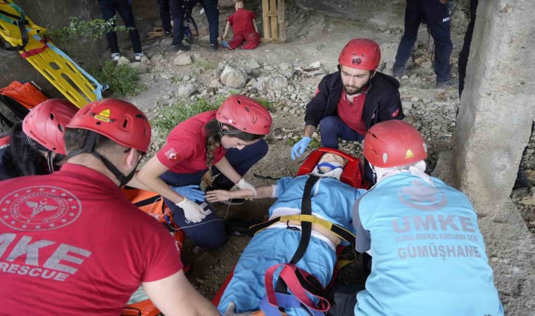 Ekiplerin 112 acil çağrı merkezine düşen ihbarın hemen ardından 5 dakika içerisinde olay yerine vararak büyük başarı gösterdiklerini söyleyen Gümüşhane AFAD Şube Müdür vekili Mümin Ceylan, “Bugün Erzincan merkezli 5.9 şiddetindeki depremin akabinde Çamlıca Mahallesi’nde bulunan tek katlı metruk bir binada göçük oluştu ve altında yaralılar olduğu belirlendi. 112 çağrı merkezinden alınan bilgi doğrultusunda buraya 112 acil sağlık, itfaiye, AFAD, emniyet, UMKE ve MEB AKUB ekipleriyle geldik. Polis ekipleri tarafından güvenlik önlemlerinin alınmasının ardından AFAD ekipleri kazazedelerin yerini belirledi akabinde yine ekibimiz tarafından göçük oluşan binaya girildi. Daha sonra UMKE ekipleri tarafından yaralı vatandaşlarımızın hastaneye sevki sağlanmıştır. Bu tür tatbikatlar ekiplerimizin kaynaşmasını ve olay anında daha hızlı ve daha etkin müdahale etmeleri sağlanıyor. Tatbikat başarıya ulaştı 14.15’te ihbar geldi 14.20’de de ekiplerin hepsi olay yerine geldi” dedi.